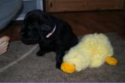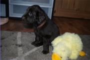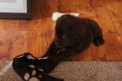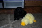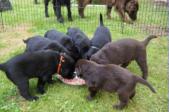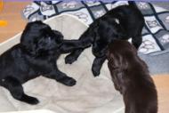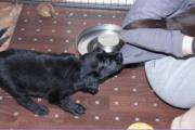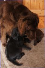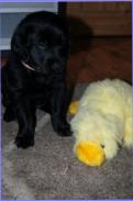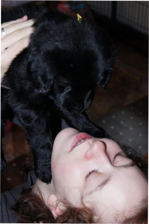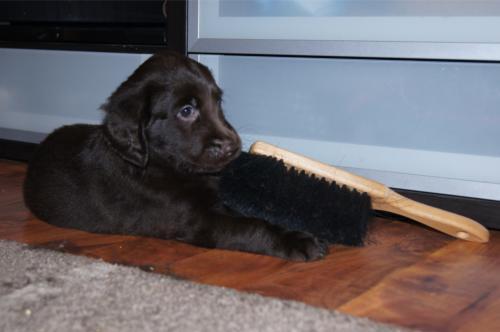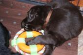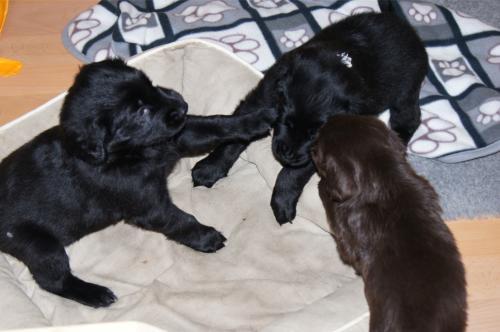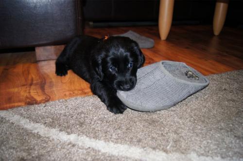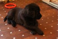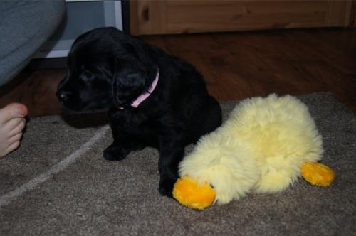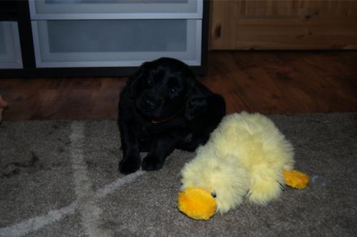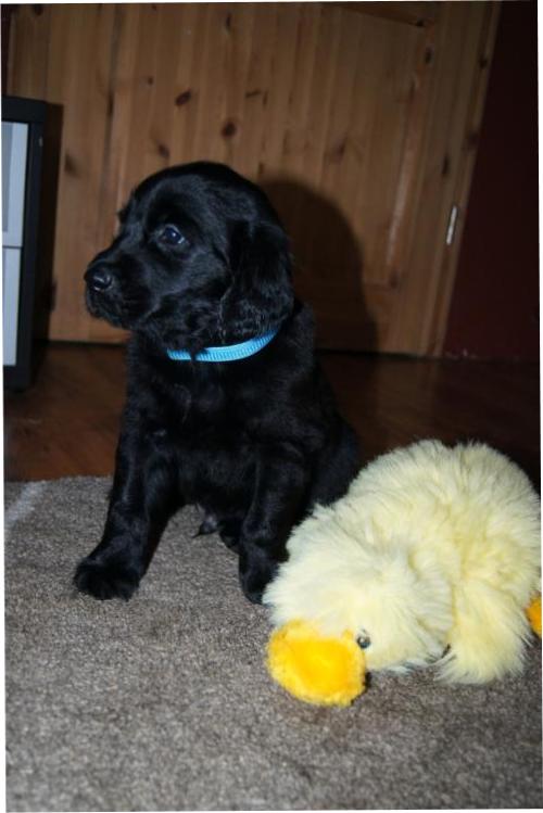 B-Wurf * 6. Juni 20126. Woche11. Juli 2012Wahnsinn, die 6. Woche hat begonnen und aus den kleinen, süßen, zarten Welpen sind mittlerweile wilde, draufgängerische und kämpferischekleine Monster geworden. Es wird gekämpft, geknurrt und gebellt, was das Zeug hält - nicht nur die Spielsachen müssen dafür herhalten, sondernauch alle Geschwister und leider auch wir :). Nur wenn sie schlafen, dann sehen sie immer noch aus, als könnten sie kein Wässerchen trüben. JungsRüde braun(braun) 3090gRüde schwarz (grau) 3520gRüde schwarz (blau) 3670gMädelsHündin braun (ohne) 1980gHündin schwarz (rosa) 3320gHündin schwarz (orange) 3080gHündin schwarz (apricot) 3300gEinzel-Fotoshooting mit Ente (zum Größenvergleich) und kleine Rätselaufgabe: Es hat sich ein Fehlerteufel eingeschlichen. Wer findet ihn?... Festmahl im GartenLinus im Nahkampf mit Tessarette sich wer kann.....Jasper beim relaxenFlugstunde für JuleLinus kann auch schmusen
