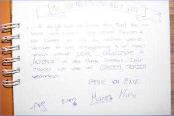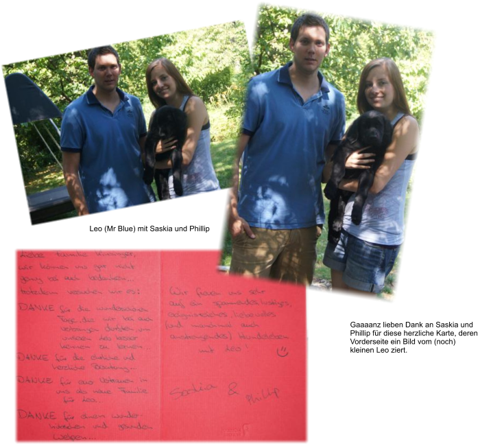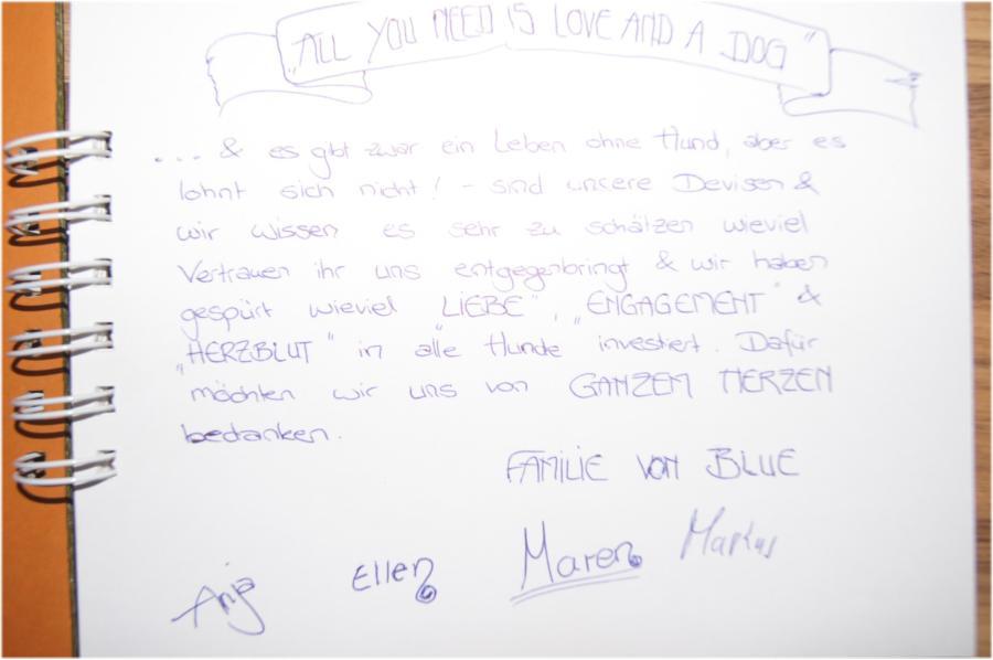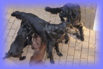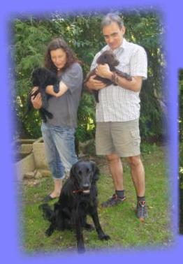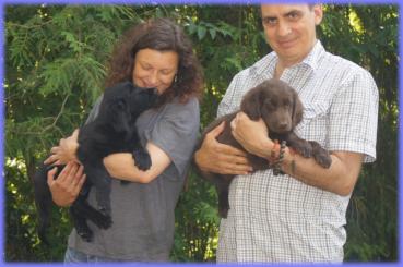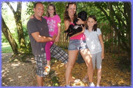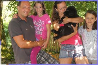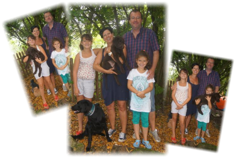 C-Wurf * 11. Mai 2013Die schönste Zeit für die neuen Familien beginnt. Wir Züchter sehen diese Zeit mit einem lachenden und einem (stark) weinenden Auge. Nach und nach verlassen unsere C-chen ihre gewohnte Umgebung und ziehen bei ihren neuen Familien ein. Ein neuer Lebensabschnitt beginnt für die kleinen Flatnasen, die Geschwister sind nicht mehr da, dafür aber viele nette Menschen und ganz viele neue Eindrücke. Es gilt jetzt die große weite Welt zu erkunden, zu erkennen, wie schön das Leben sein kann.9. Juli 2013 - da waren’s nur noch 4Lucy und Franklin sind die ersten die ihr Nest verlassen. Sie haben das Glück, gemeinsam in ein neues Leben zu starten. Die Umstellung wird für beide nicht sehr groß sein. Außerdem kennen sie ihre neuen Familienmitglieder, Hanno, Marion und Linus (einer unserer B-Würfchen) schon aus vielen Besuchen.die letzte gemeinsame Mahlzeit bei Mama -und sogar Papa Balou hat sich dazu gesellt.Der beste u. tollste Papa der Welt, der eine unendliche Geduld mit uns hatte und gaaanz viel mit uns gespielt hat :).Danke Lilly und Balou für diesen außergewöhnlichen, tollen, super gelungenen C-Wurf - ich bin stolz auf Euch :)10. Juli 2013 - da waren’ s nur noch 3Heute darf Blue zu seiner neuen Familie umziehen. Auch er hat das Glück, dass er zu einer älteren Hundedame namens Gina umziehen darf. Außerdem erwarten ihn mit noch mehr Ungeduld sein neues Frauchen, Herrchen und 2 super liebe Mädels. Marion und Hanno Welsch mit Lucy und Franklin (vorne Linus)Markus, Ellen, Anja und Maren mit Blue (ehem. Mr White)(von li nach re)19. Juli 2013 - Leo zieht um - da waren’s nur noch 2Unser kleiner Leo (Kampfgewicht gestern knapp über 9kg) zieht heute zu Saskia und Phillip nach Weil der Stadt. Er wird dort mit seinem Frauchen bald eine Ausbildung zum Therapiehund beginnen und darf jeden Tag mit Saskia in den Kindergarten. Ich wünsche meinem kleinen Schatz ein wunderschönes und erfülltes Hundeleben und seiner Familie gaaanz viel Spaß mit ihrem Traumhund.Ich habe mich sehr über das Büchlein mit der tollenWidmung gefreut und es erfüllt mich mit Stolz, wie sehrunsere Flatfamilien es zu schätzen wissen, mit wievielHerzblut wir versuchen, unseren Welpen den Weg in ein entspanntes und glückliches Leben zu bereiten.28. Juli 2013 - Cooper und Nilsson dürfen endlich in ihr neues Zuhause umziehen (schnief....)Cooper mit Cleo (vorne, eins unserer B-Würfchen), Tanja, Achim und 2 der Mädels aus dem Holz-Clan.... und Nilsson, als neuestes Mitglied der Familie La Marca :)31. Juli 2013Mittlerweile habe ich schon zahlreiche Rückmeldungen der neuen Familien mit wunderschönen Bildern erhalten. Alle Flatnäschen haben sichprima eingelebt, ihre neue Heimat erkundet und auf den Kopf gestellt. Ich möchte mich bei allen meinen Welpenfamilien ganz herzlich bedanken, dass wirklich alle ihre Babies soooo oft besucht und ihnen damit den Umzug erheblich erleichtert haben, für den tollen Kontakt, den sie zu uns halten, für die liebevolle Aufnahme der Kleinen in ihre Familien, die Geduld, Toleranz und das Verständnis für zerkaute Schuhe, umgetopfte Pflanzen, zerlesene Bücher, schmutzige Sofas und Teppiche und die vielen Kratzer an Armen und Beinen. Danke!
