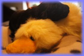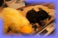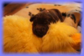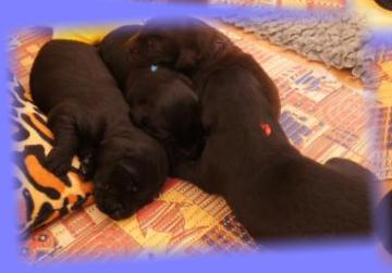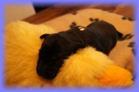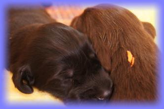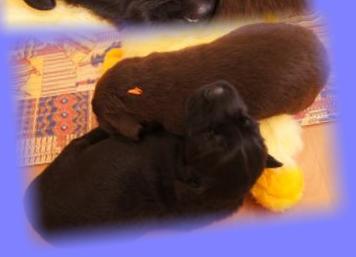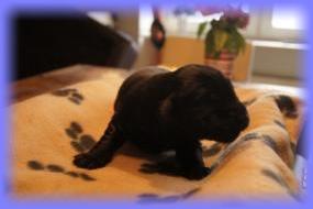 Die zweite Lebenswoche unserer 6 munteren Flatbabies hat begonnen. Immer noch bestimmen schlafen, trinken und Bellenüben den Tagesablauf. Die Äuglein sind immer noch geschlossen. Alle sind putzmunter, sehr agil und nehmen prächtig zu. Andas nächtliche Gequieke habe ich mich nun schon etwas gewöhnt und renne nicht bei jedem Geräusch nach unten - ichvertraue LIlly, sie ist auch dieses Mal eine Traummama und wir sind stolz auf unsere Maus.C-Wurf * 11. Mai 2013Mr blueMr orangeMr lilaMr redMr whiteMiss Lucy22.05.2013Es ist immer wie ein kleines Wunder, wenn sich bei den Mäuschen die Äuglein öffnen. Und heute war es so weit: Mr White und Mrs Lucy blinzelten mich aus kleinen Schlitzen an :). Nun dauert es nicht mehr lange und die kleinen Flatnasen sehenzum ersten Mal ihre Mama, Ihre Wohnung und natürlich uns - Die Gerüche werden zu Gesichtern.... Sobald die Augen weiteroffen sind, werde ich Bilder hochladen.23.05.2013Heute haben alle die 1kg-Marke geknackt, zwischen unserem Leichtgewicht Mr Lila und dem Wonneproppen Mr White liegen stolze 310g!! 24.05.2013Eigentlich hatte ich einen wunderschönen Film über die kleinen Flatnasen bei ihren ersten “Gehversuchen” ohne Bodenkontaktmit dem Bauch, aber einer Menge lautstarkem Spektakel, gedreht, aber leider ist der Film fehlerhaft und nicht zu öffnen. :(Als Entschädigung Bilder von heute beim gemeinsamen Chillen mit vollem Bauch :)......