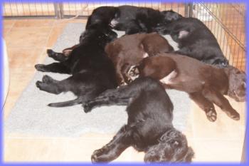 C-Wurf * 11. Mai 2013JungsLeo, Rüde schwarz (blau) 5610 gFranklin, Rüde braun (orange) 5060 gCooper, Rüde braun lila) 5050 gNilson, Rüde schwarz (rot) 5610 gBlue, Rüde schwarz (weiß) 5580 gMädelsLucy, Hündin schwarz (gelb) 5250 gSamstag, 29. Juni 2013Beim C-Wurf stehen die Namen alle im Zeichen von leckeren und coolen Cocktails bzw. Smoothies.Voller Stolz präsentieren wir nach erfolgreicher Wurfabnahme unseren einzigartigen und super gelungenen C-Wurf: Amazing Flatpearls Chicago Freestyle“Leo”Amazing Flatpearls Coconut Cool Franklin“ Franklin”Amazing Flatpearls Cooper Libre“ Cooper”Amazing Flatpearls Caipi Blue“Blue”Amazing Flatpearls Cocoa Smoothie Lucy“ Lucy”Amazing Flatpearls Chocolate Cake“ Nilsson”Wir wollen hier raus !!!!!!!!!Meistens haben wir auch ein Einsehen, aber immer geht’s eben nicht :)Rendez-vous mit Lammkeule - welch ein Genuss,was für ein Hundeleben ........ und fix und alle danach, schlummern sie selig undträumen von der leckeren Lammkeule :)ich schmelze dahin, wennich dieses Bild sehe - einfach nur zum Auffressen....(Franklin auf Frauchen Marion’sArm)