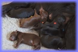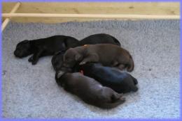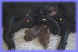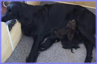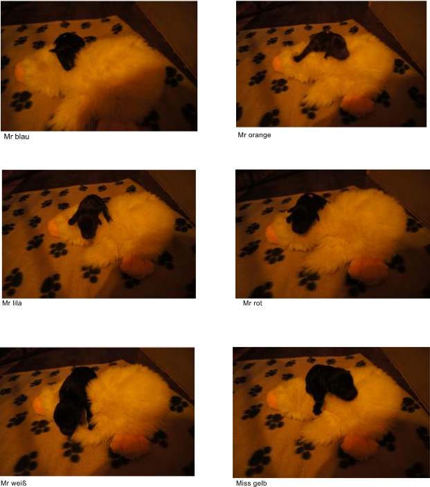 Zu einer menschenfreundlichen Zeit, schenkte LIlly am Morgen des 11. Mai 2013 6 wunderschönen Flatbabies das Leben. Allesind gesund, putzmunter und super fitt. Bereits am Sonntag wurden die kleinen Flatnasen von unserer Tierärztin untersucht und es gab, wie erwartet, keinerleiBeanstandungen. Von nun an bestimmen diese Kleinen wieder für 9 Wochen unsere Tage und Nächte, damit auch aus Ihnen, wie bei den letztenWürfen, tolle Familienhunde werden, die ihre Menschen fröhlich durchs Leben begleiten - wir freuen uns drauf. C-Wurf * 11. Mai 2013JungsRüde schwarz (blau) 328gRüde braun (orange) 365gRüde braun lila) 298gRüde schwarz (rot) 348gRüde schwarz (weiß) 388gMädelsHündin schwarz (gelb) 383gWir stellen vor:Sonntag, 12. Mai 2012Montag, 13. Mai 2012Mittwoch, 15. Mai 2012zarte Familienbande weren geknüpft - Lucy kenntihre zukünftige Familie nun schon :)Mr lila im Land der Träumeund immer wieder ruft die Milchbar ...bei Mama kuschelt es sich am schönsten...und auch Lilly entspannt sich zwischendurch