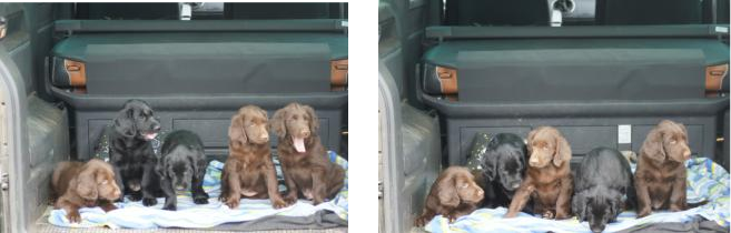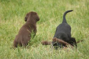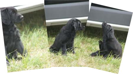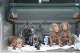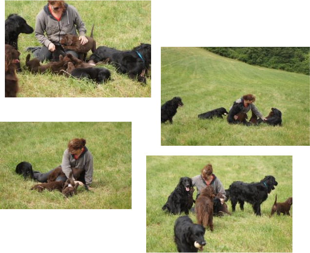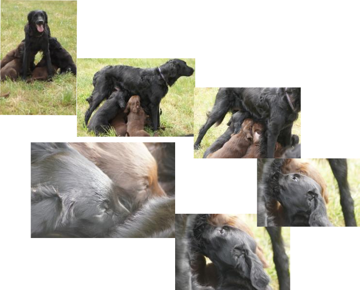 Der Abschied naht und wir sehen ihm mit einem lachenden und einem weinenden Auge entgegen. Unsere Babys sind flügge geworden und brauchen mehr Aufmerksamkeit, als wir ihnen schenken können. Jeder einzelne kleine Flat möchte die Aufmerksamkeit von uns Zweibeinern und nicht mit unseren 4 Großen und den anderen vier Geschwistern teilen. Und deshalb ist es gut, dass alle Ende der Woche zu ihren neuen Familien ziehen. Aufregend und anstrengend wird es für meine Mäuse werden, alles ist neu, die Umgebung, die Menschen die Gerüche und auch evtl. neue Vierbeiner .... fehlen wird ihnen ihre Wurfkiste, ihre Geschwister, die Mama mit der Milchbar und ein wenig auch ich, ihre Ziehmama der ersten 9 Wochen ihres jungen Lebens. Ich wünsche ihnen von ganzem Herzen ein spannendes, erlebnisreiches Leben bei Familien, die sie von ganzen Herzen lieben, die sie Flats sein lassen und diese Clowns gerade wegen ihrer überschwenglichen, lebensfrohen und freundlichen Art umso mehr lieben - so wie wir es getan haben, in den ersten 9 Wochen ihres Lebens und tun werden, für den Rest ihres hoffentlich langen Lebens.Natürlich sind wir ein wenig traurig und wehmütig , vor allem weil es Lillys letzter Wurf gewesen ist - und wer weiß, vielleicht gar unser letzter Wurf als Züchter. Es war immer wieder ein tolles einzigartiges Erlebnis, dies Wunder der Natur miterleben zu dürfen und in die glücklichen Augen der neuen Familien zu schauen, wenn sie ihr Baby endlich mit nach Hause nehmen dürfen.1. Autofahrt mit Ausflug