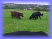 das sind Volker, Susanne, Niklas und Tessa, unsere 4 (+1) Flats "Flat", “Lilly”, “Balou”,“Buffy” (und unsere “Amy”, die immer noch dazu gehört) sowie 6 Quarterhorses. Wir wohnen in einem kleinen Bauernhaus im idyllischen Mandelbachtal. Tiere nehmen und nahmen schon immer einen besonderen Platz in unserem Leben ein. Heinz Rühmann sagte einst: "Man kann ohne Hunde leben, aber es lohnt sich nicht". Und genau so sehen wir das auch! Unsere Familie, 2004 stießen wir durch Zufall auf einer Hundemesse auf eine Rasse, die eine solche Herzlichkeit ausstrahlte und ihrer Freude durch permanentes Wedeln Ausdruck verlieh, dass wir sofort unser Herz verloren: der Flatcoated-RetrieverUns war klar, diese und keine andere Rasse sollte es werden! Wie schwer es sein würde, zur damaligen Zeit in Deutschland einen Flat zu bekommen, ahnten wir zu diesem Zeitpunkt nicht .... Scließlich klappte es aber doch und so kam dann nach dem Tod von “Lisa” unser 1. heißersehnter Flat zu uns - allerdings aus der Schweiz ....