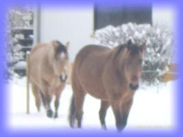 Unsere Pferde leben im Winter bei uns am Haus im Offenstall und verbringen